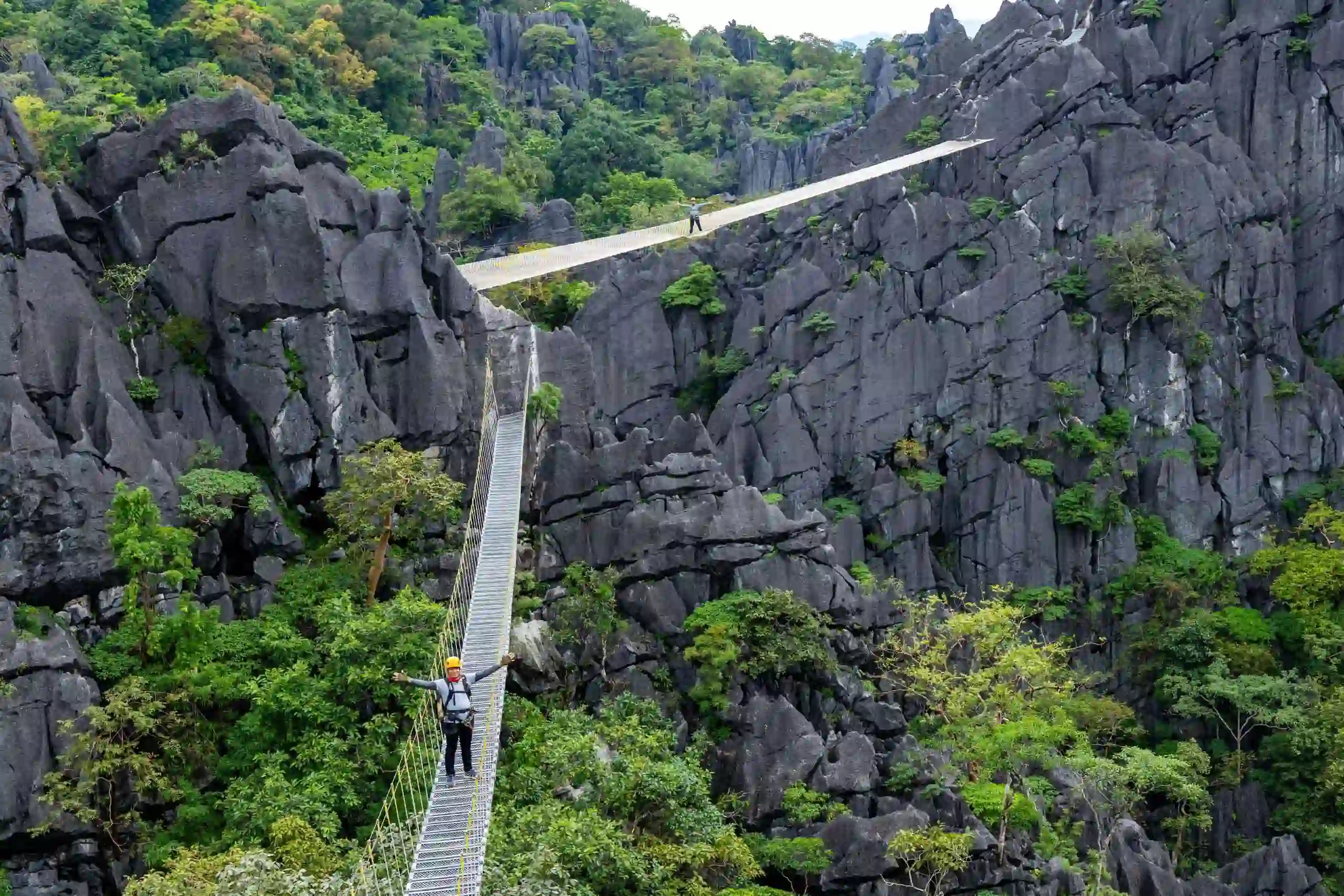 As the loop begins to close, the ride back toward Vientiane becomes more relaxed. One of the standout stops here is The Rock Viewpoint, offering wide views across dramatic karst peaks, while enjoying the calm rural setting before the final ride back to the capital.